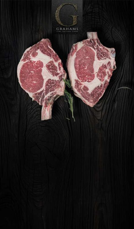 Premium Scotch beef, grass-fed and grass-finished rib-eye steak on the bone. Perfect for sharing at the BBQ.
