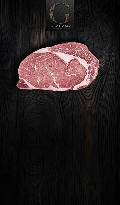 Dry-aged Scotch Rib-eye. Grass-fed and grass-finished. Lovely rich flavor and super marbling – one for the ‘true’ steak lover